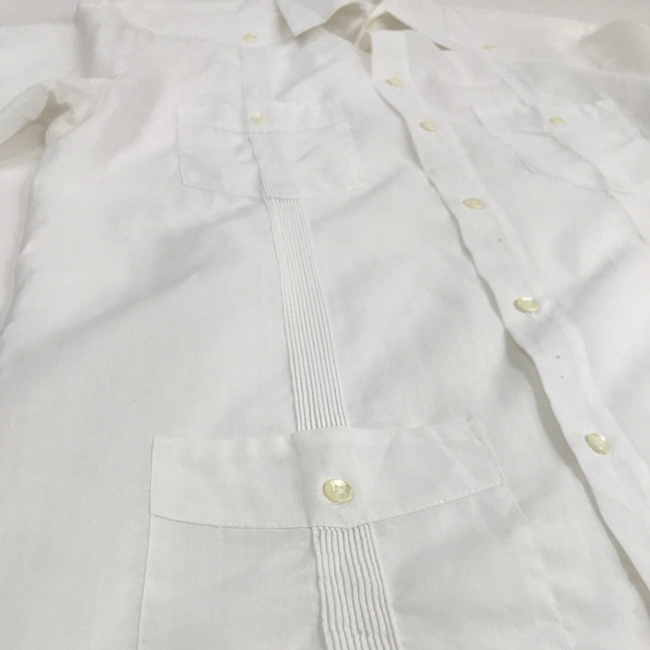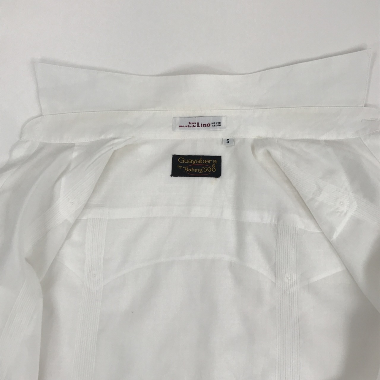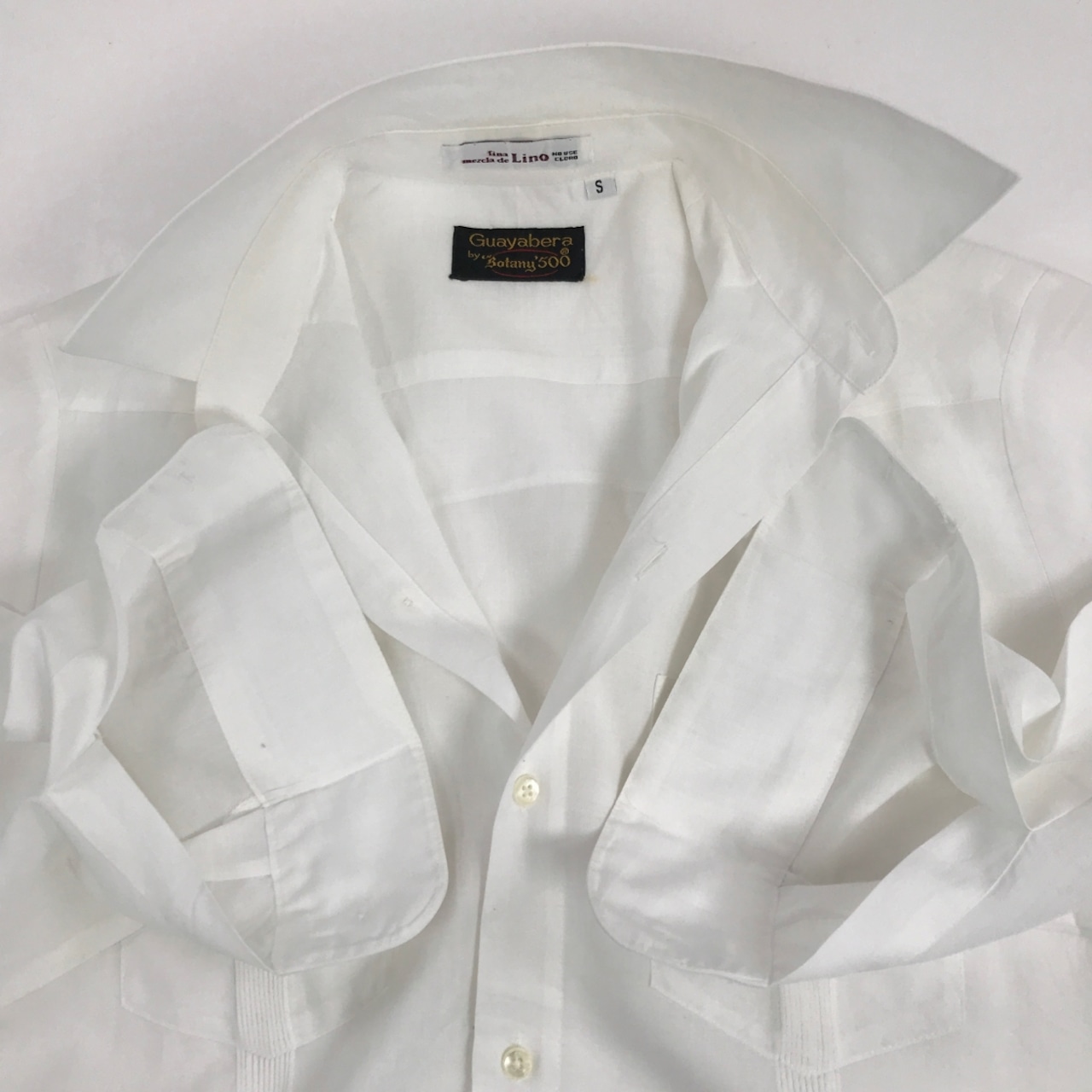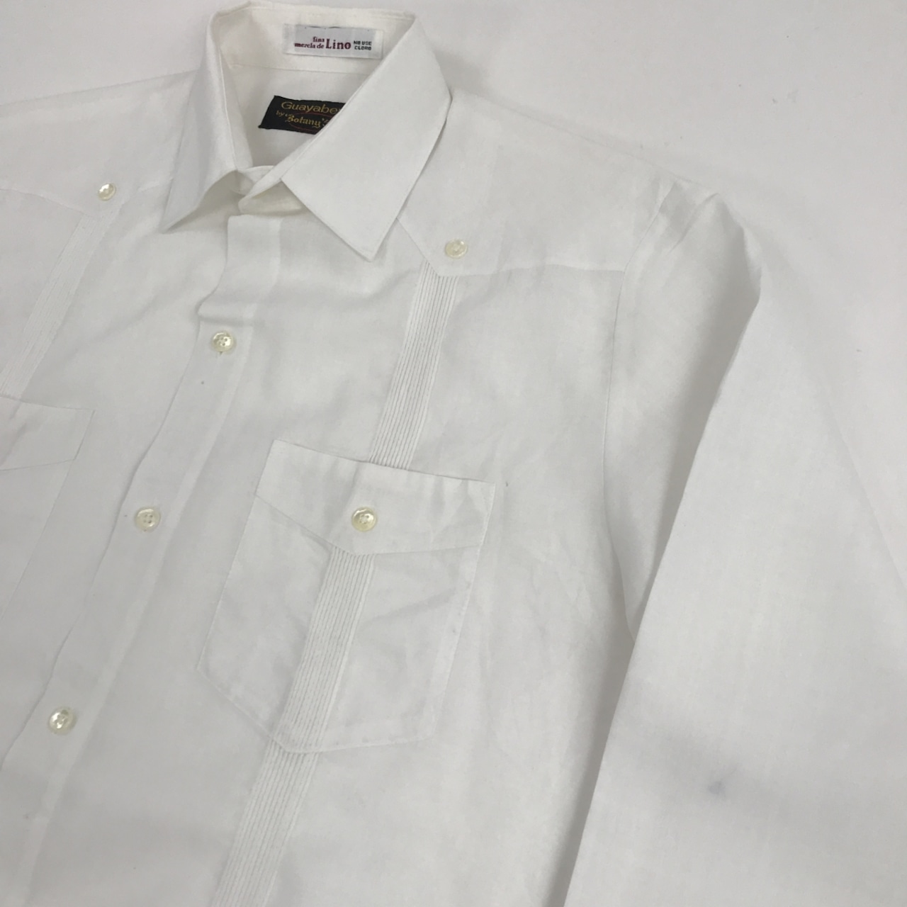 GUAYABERA BY BOTANY 500 80〜 90年代 リネン混 キューバシャツ ドレスシャツ ホワイト S 表記 長袖