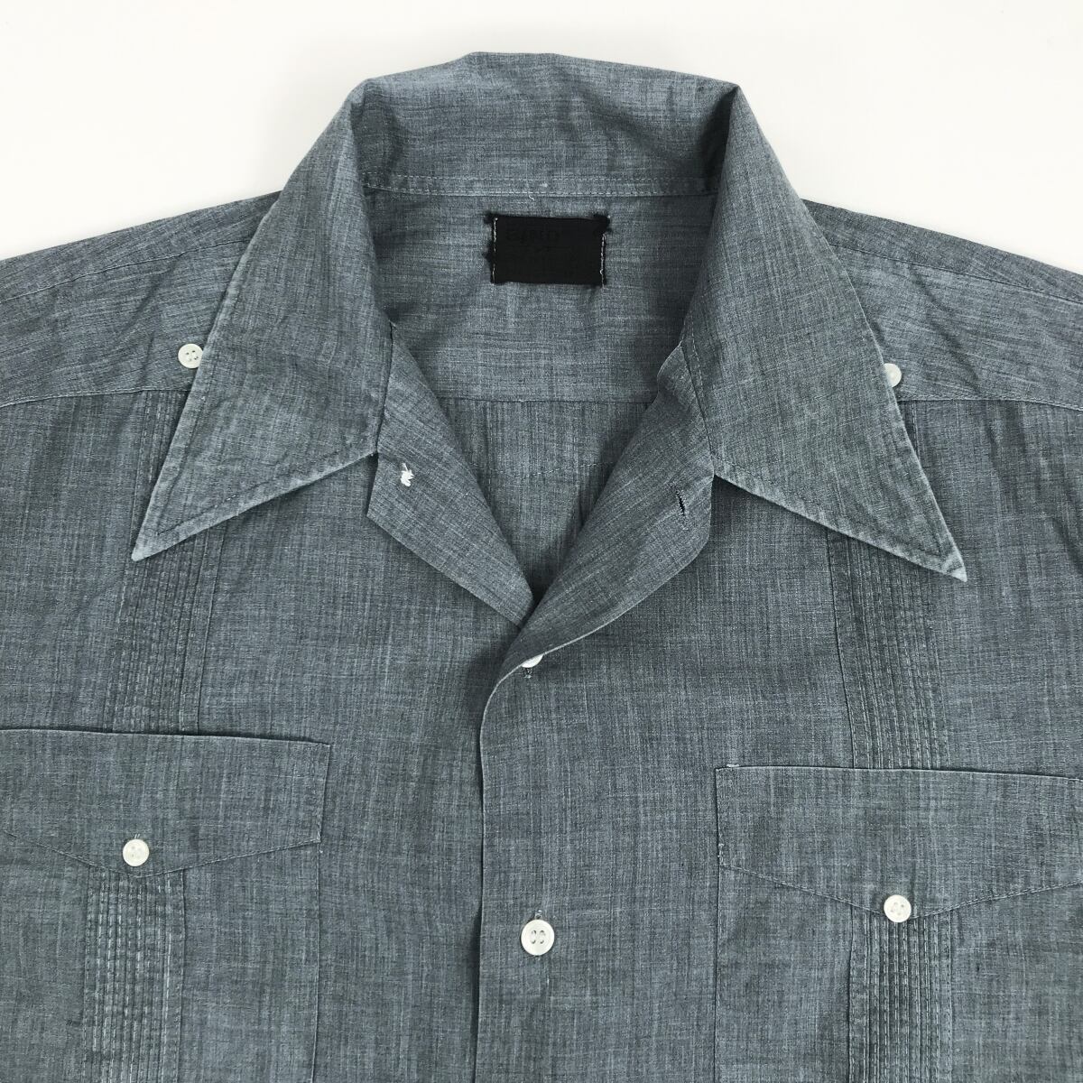 BIN0 80〜 90年代 オーバーダイ 後染め 襟芯入り キューバシャツ GUAYABERA SHIRTS チャコールグレー XL 位 半袖