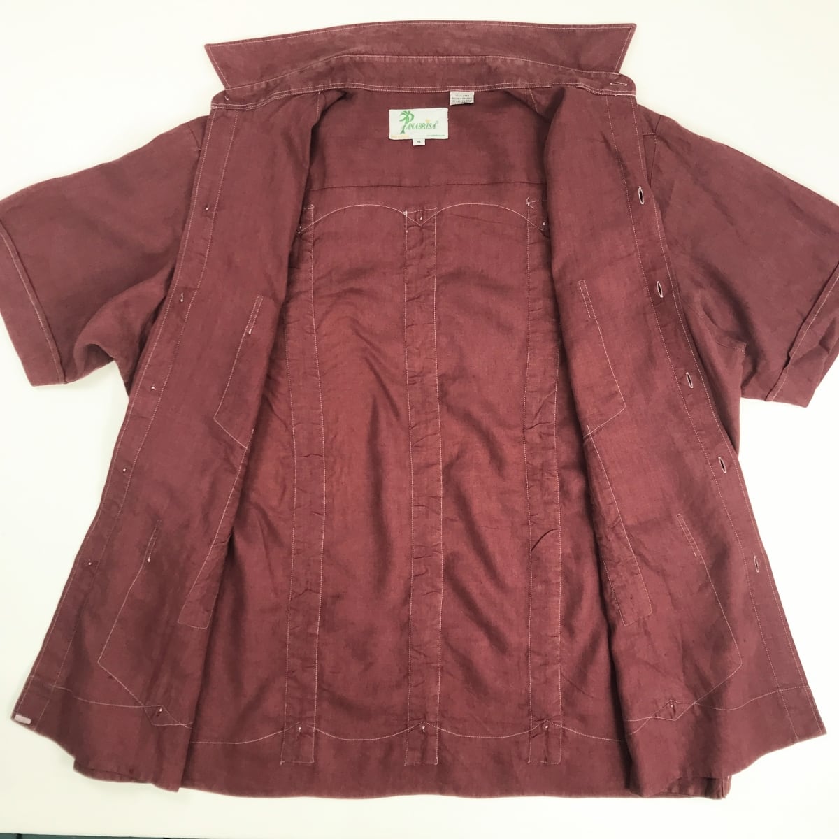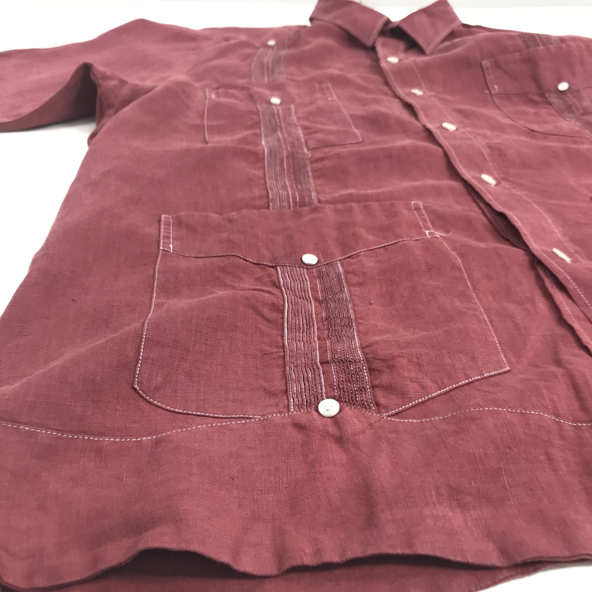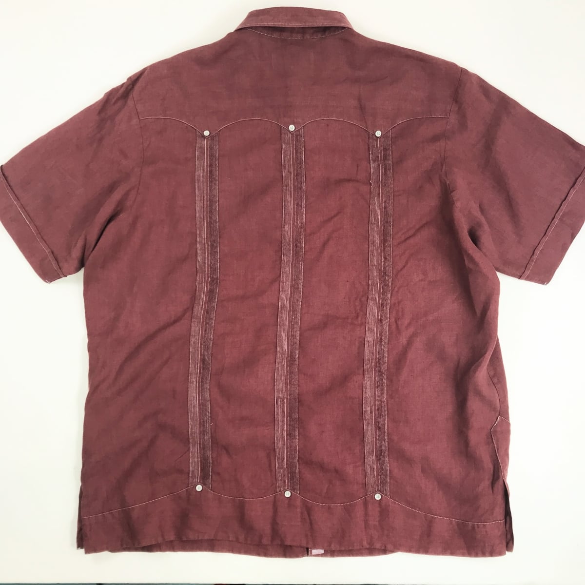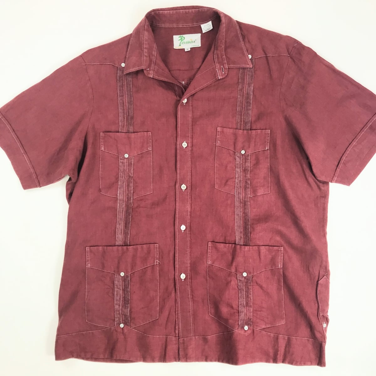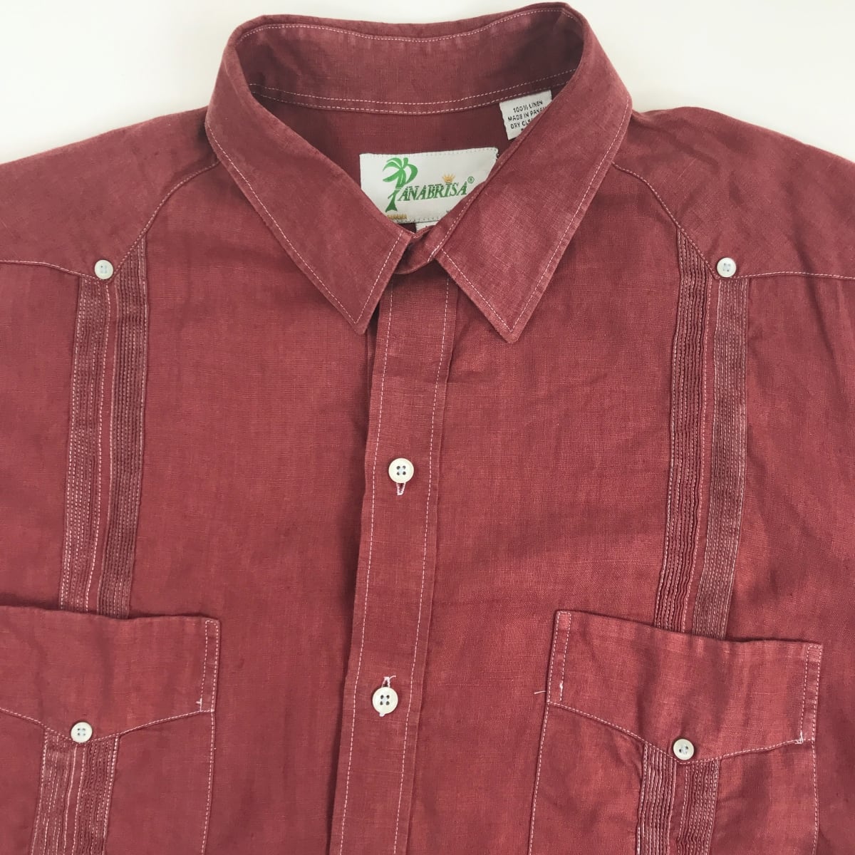 PANABRISA 90年代 PANAMA製 襟芯入り キューバシャツ 全麻 リネン GUAYABERA SHIRTS バーガンディー XL 表記 半袖