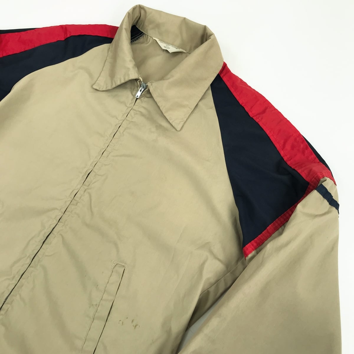 UNKNOWN US VINTAGE 70〜 80年代 三角タグ ライン 切り替え スイングトップ ブルゾン ベージュ L 表記 長袖
