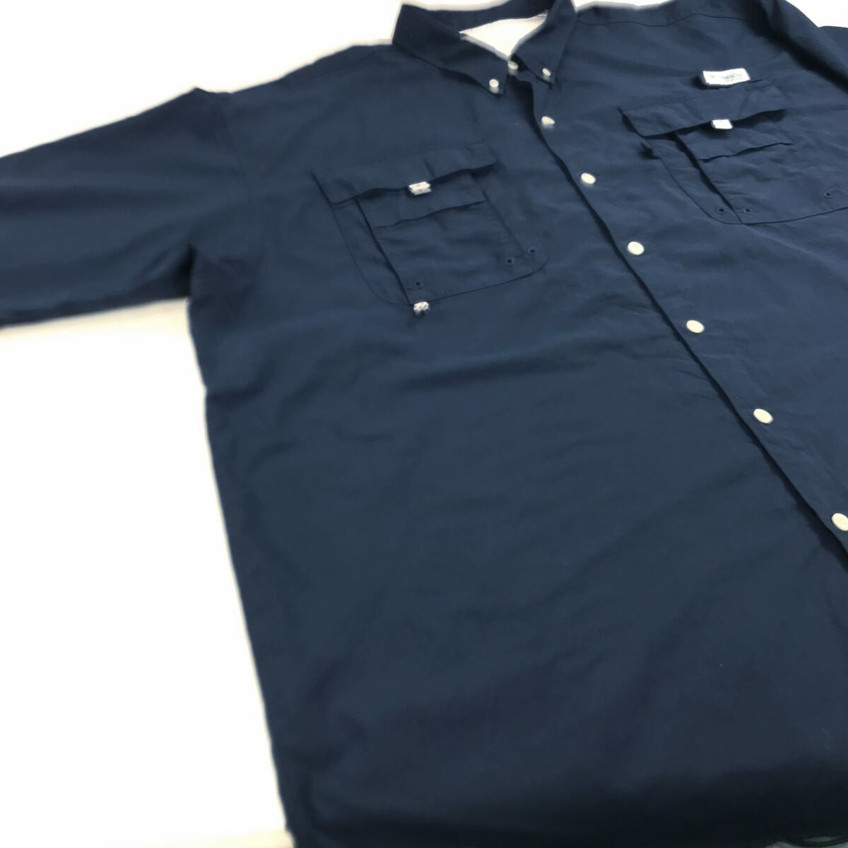 COLUMBIA PFG コロンビア OMNI-SHADE フィッシングシャツ ボタンダウン ネイビー 3XL 表記 半袖