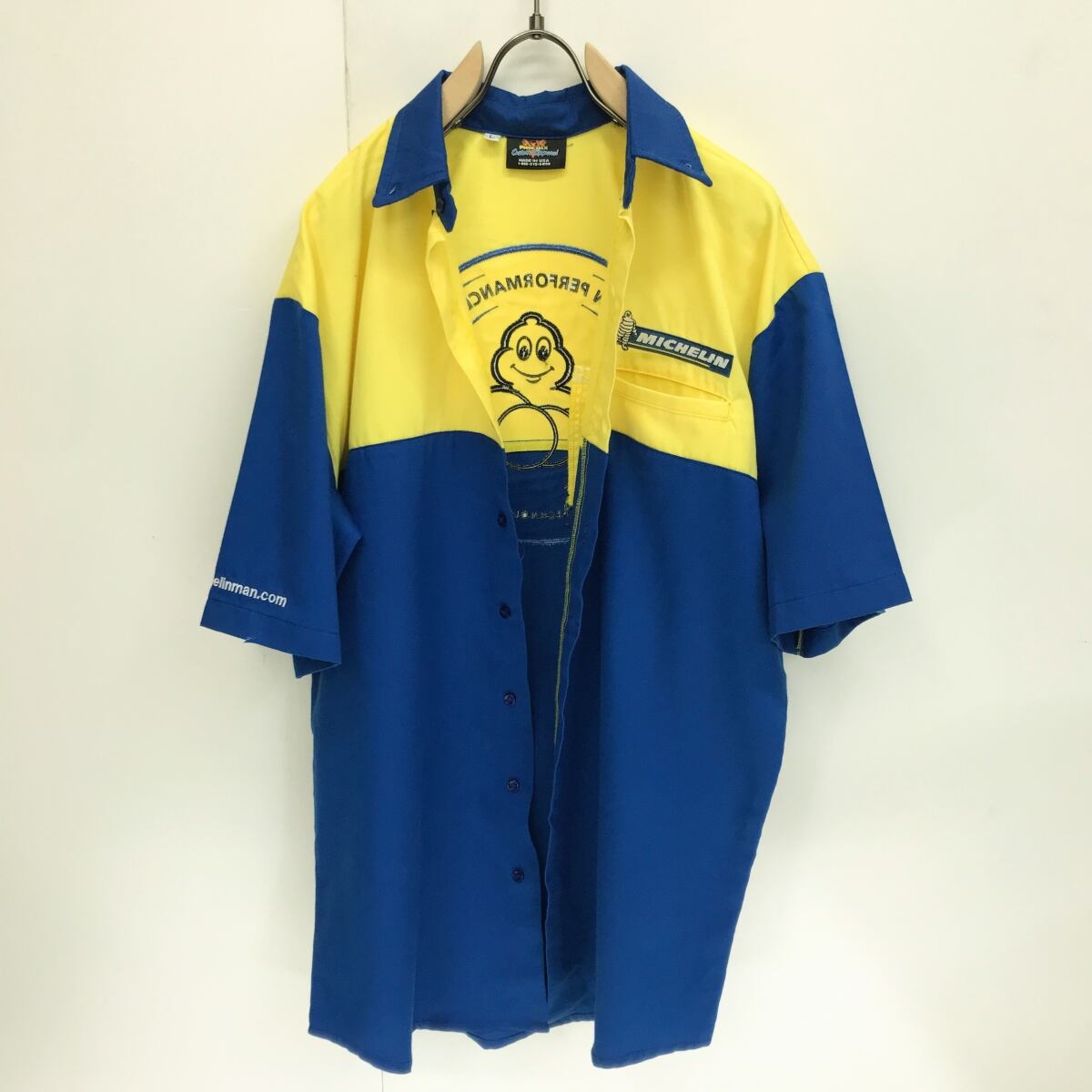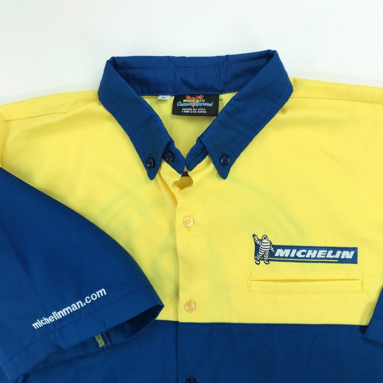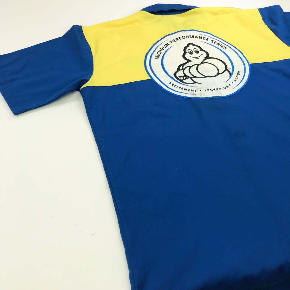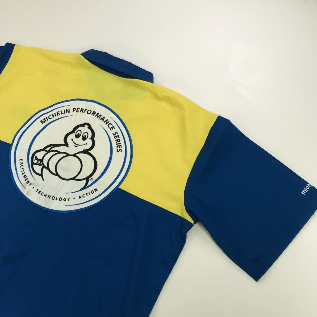 PHOENIX CUSTUM APPAREL USA製 MICHELIN ミシュラン ビバンダム ビッグパッチ PIT CREW SHIRT レーシングシャツ ブルー L 表記 半袖 | 古着屋 EAGLEBASE