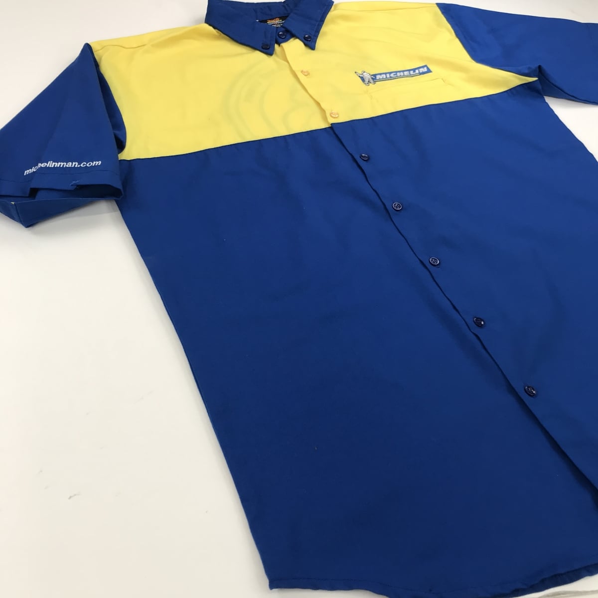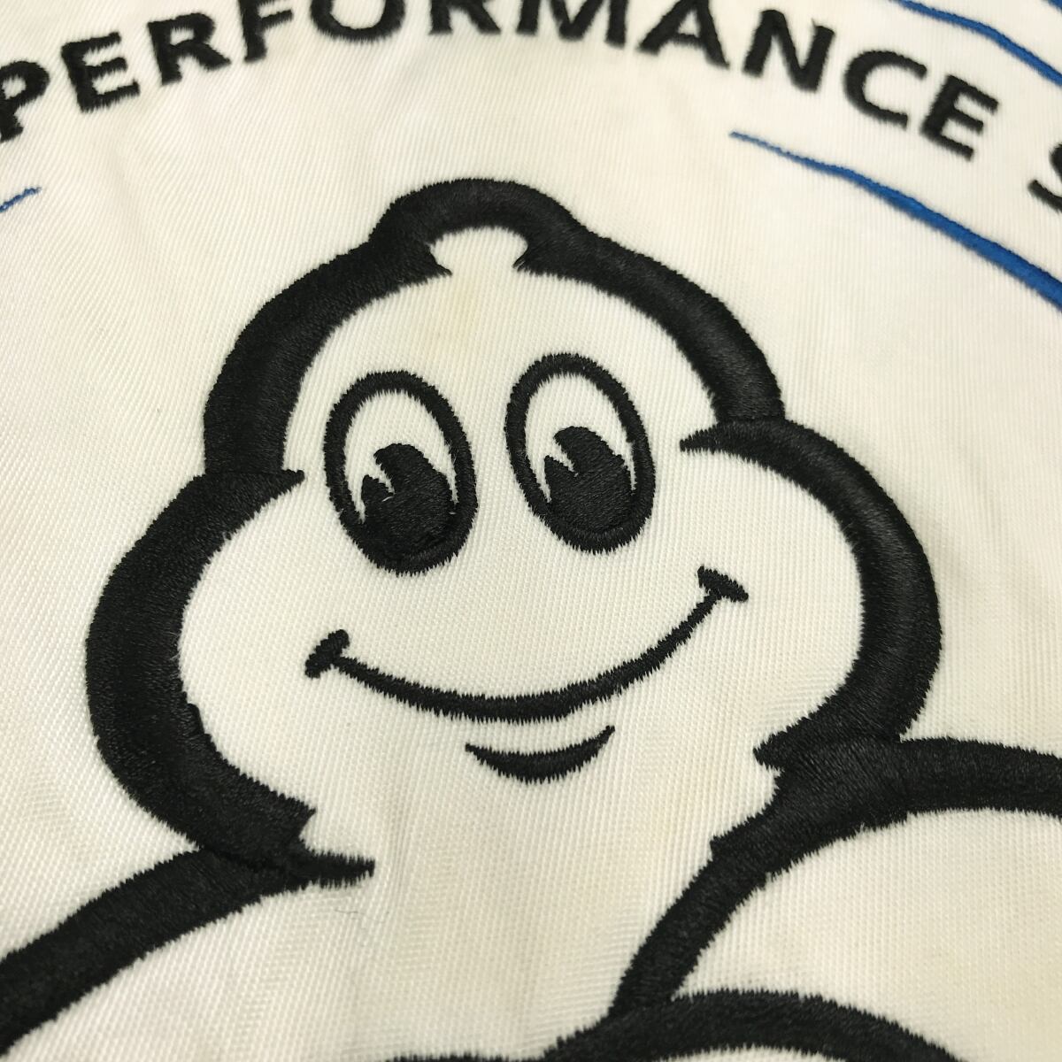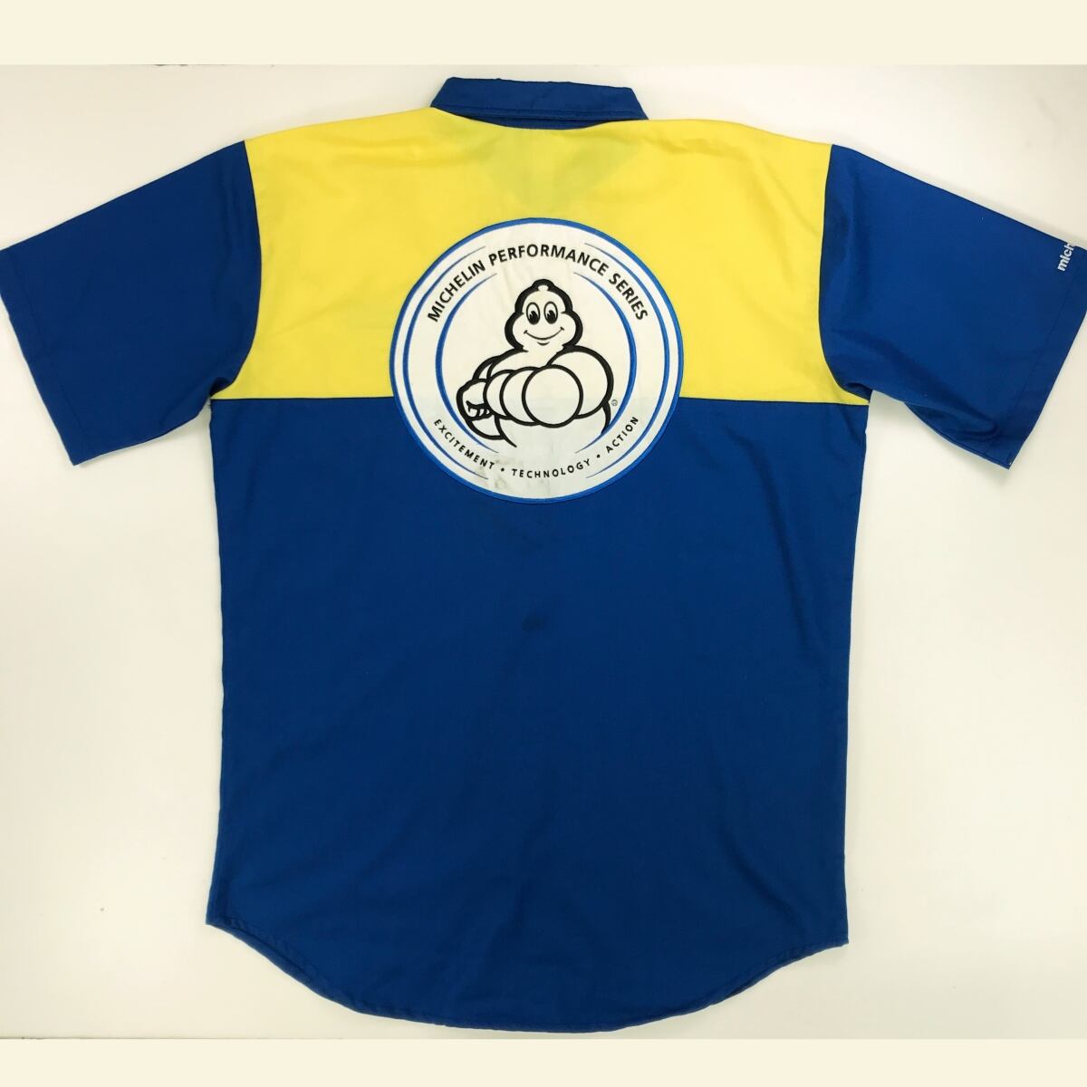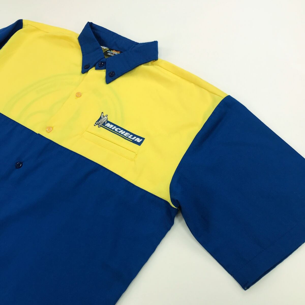 PHOENIX CUSTUM APPAREL USA製 MICHELIN ミシュラン ビバンダム ビッグパッチ PIT CREW SHIRT レーシングシャツ ブルー L 表記 半袖 | 古着屋 EAGLEBASE