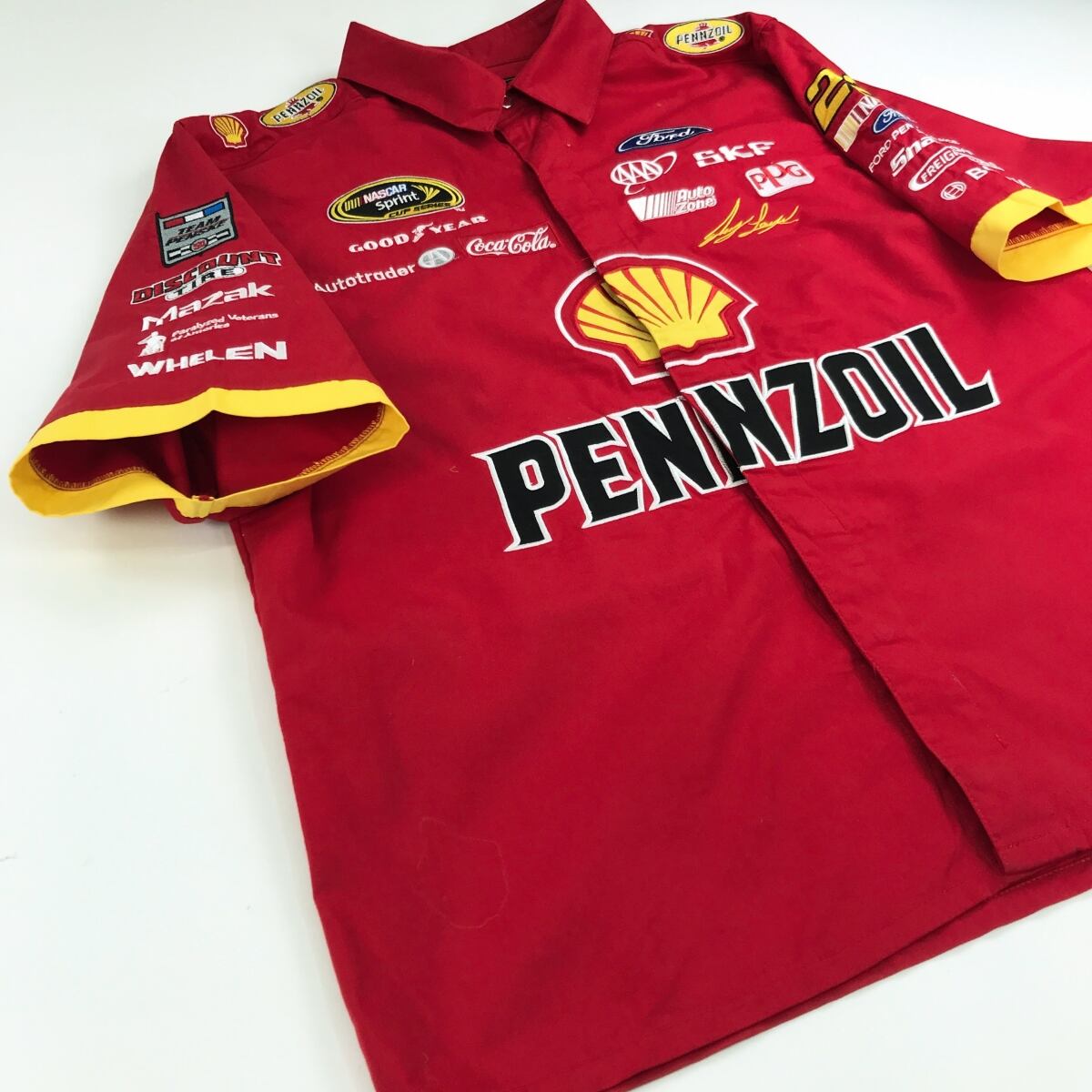 NASCAR BY JH DESIGN タグ付き SHELL PENNZOIL PIT CREW SHIRT レーシングシャツ JOEY LOGANO #22 レッド M 表記 半袖