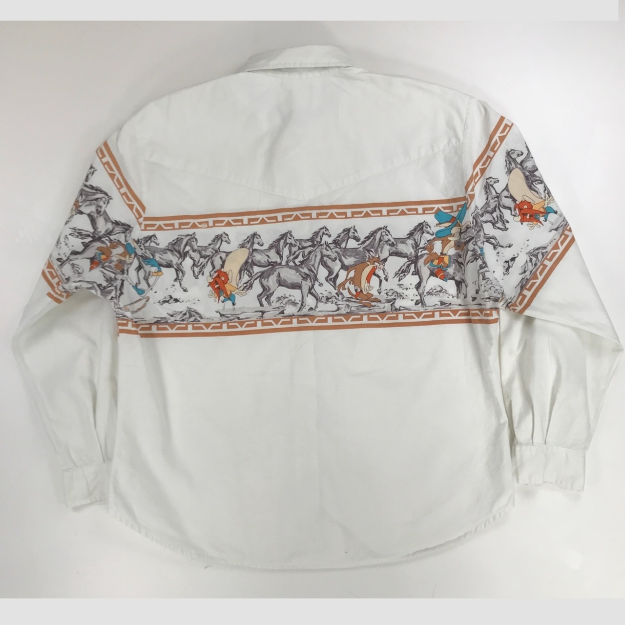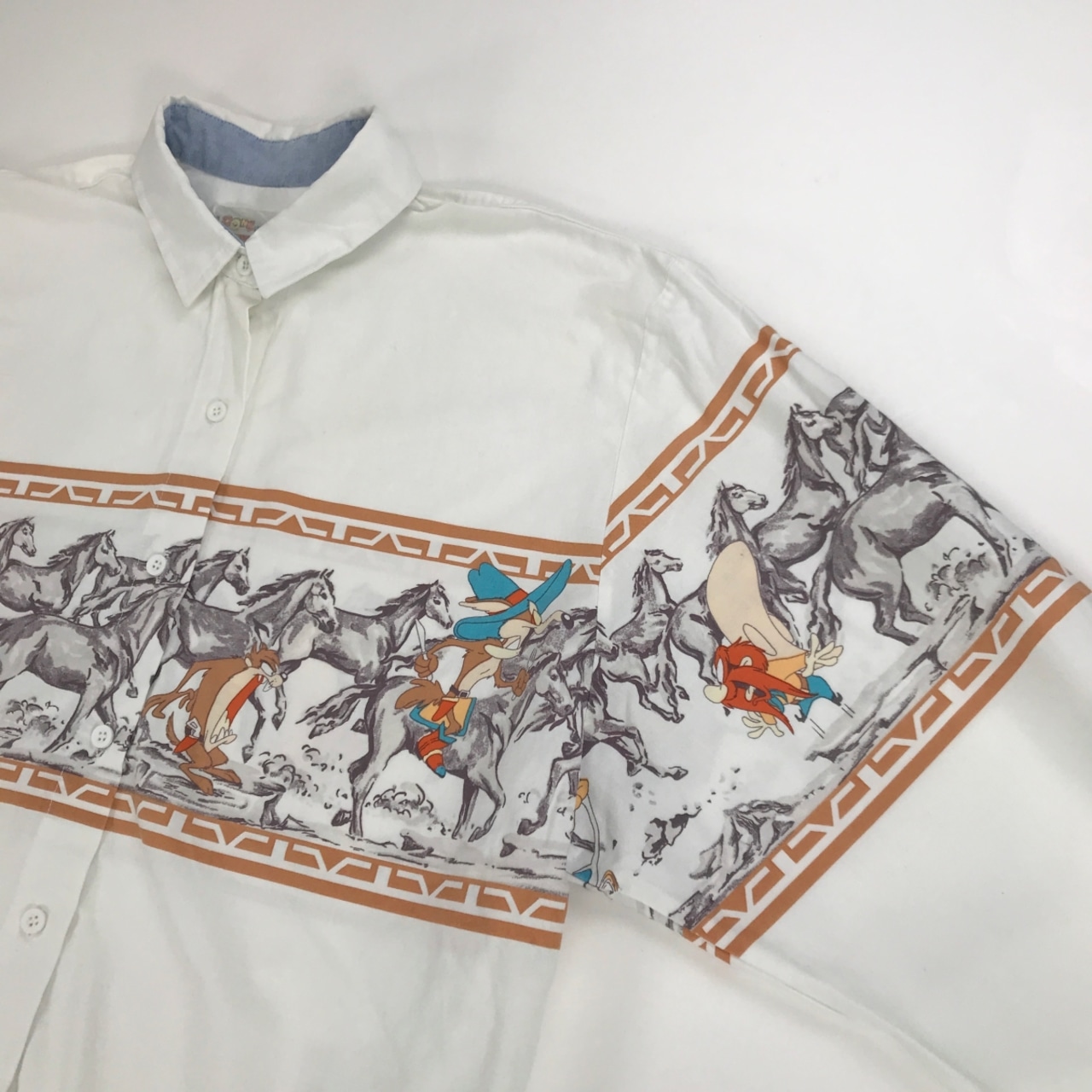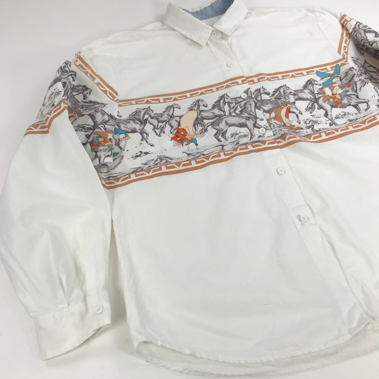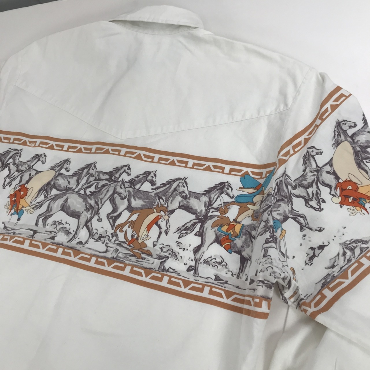 LOONEY TUNES WESTERN COLLECTION BY KARMAN 90年代 USA製 ルーニーテューンズ ウエスタンシャツ ホワイト ML 位 長袖
