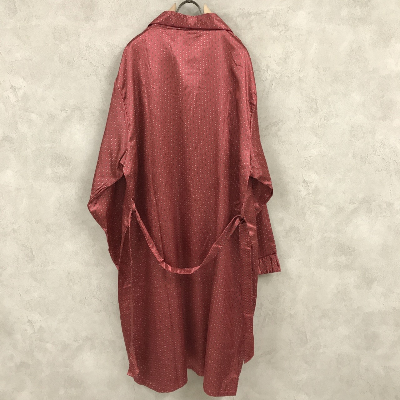 KELVIN GORDON 90年代あたり タグ付き デッドストック ベルト付き 光沢 サテン系 パジャマガウン ナイトガウン ロングガウンコート 総柄 全柄 オレンジピンクレッド系 140 表記 長袖 | 古着屋 EAGLEBASE