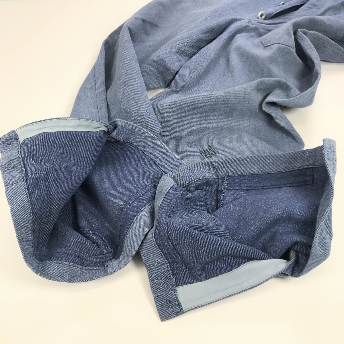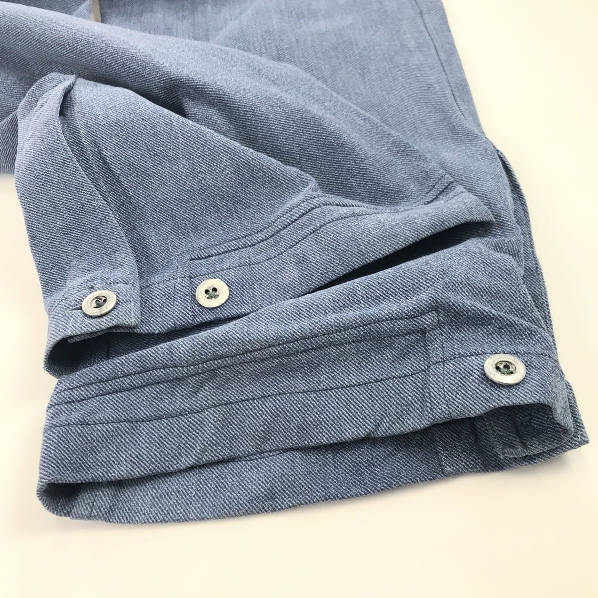 うすいブルーの綾織デニムを使用