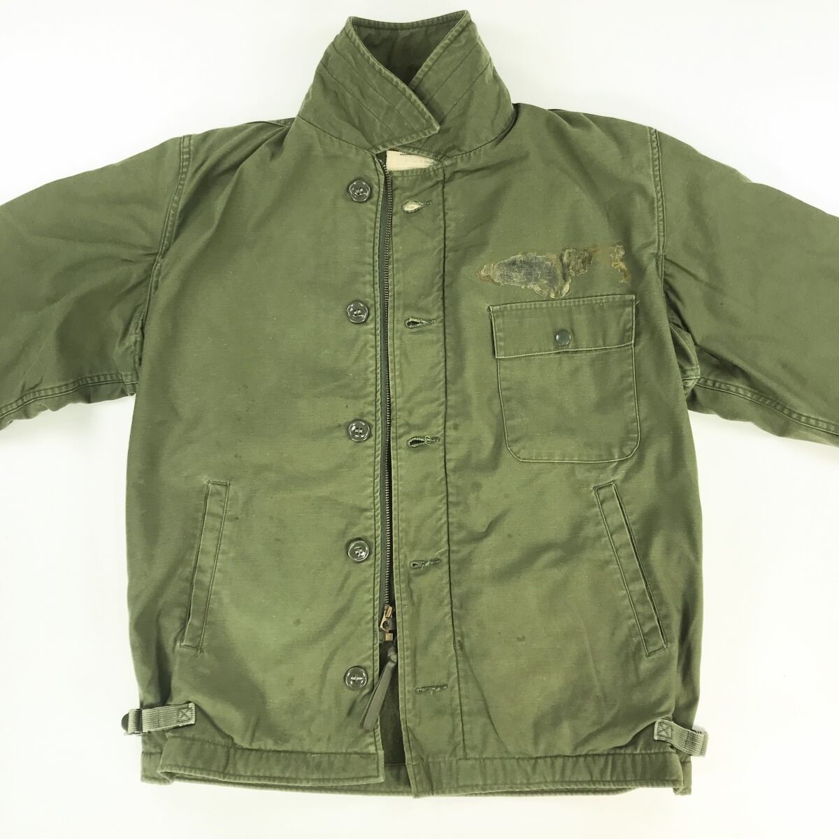 U.S.NAVY 70年代 A-2 デッキジャケット JACKET COLDWEATHER,PERMEABLE ダークオリーブ系 MEDUIM 表記 長袖