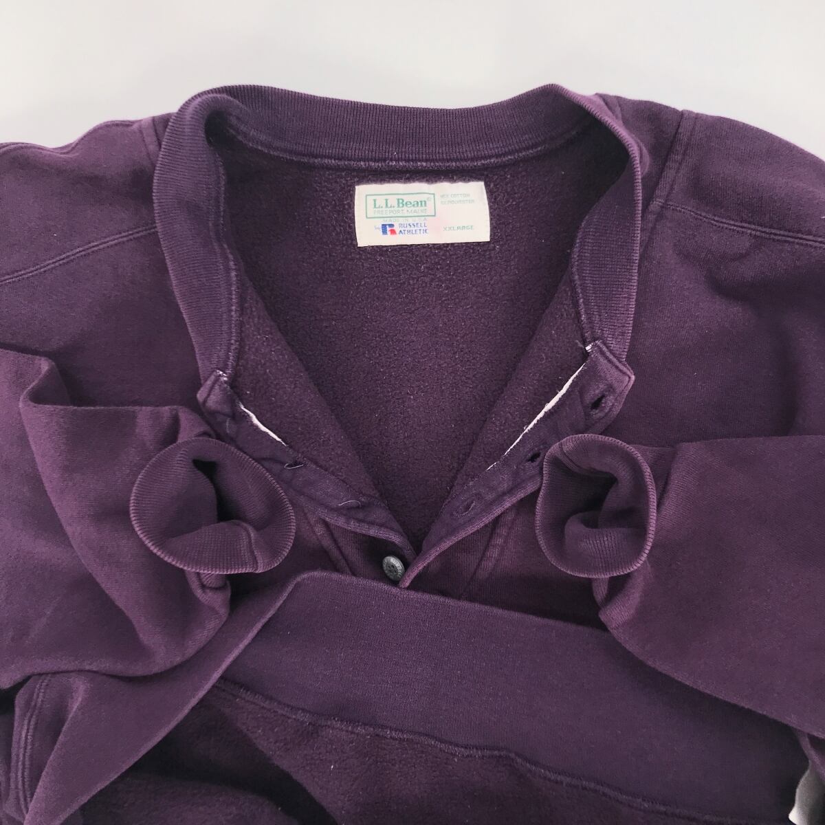 L.L.BEAN BY RUSSELL ATHLETIC 90年代 USA製 エルエルビーン ラッセル ダブルネーム ヘンリーネック 無地 プルオーバー スウェット パープル XX LARGE 表記 長袖
