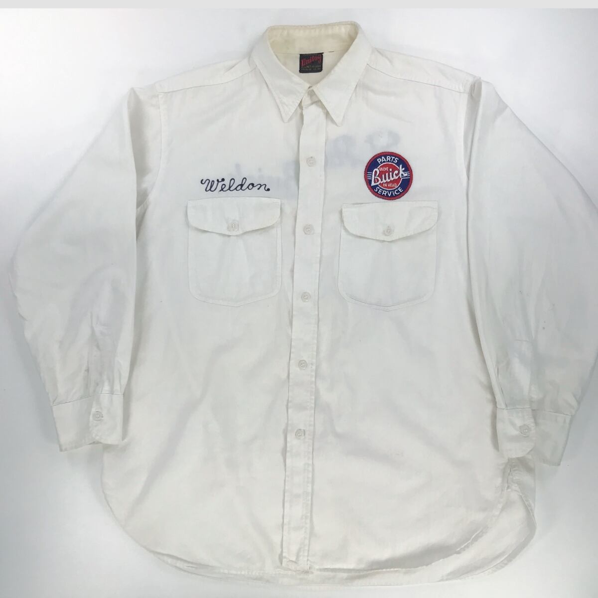 UNITOG 50〜 60年代 HBT BUICK PARTS AND SERVICE ヘリンボーンツイル ワークシャツ マチ付き ホワイト 16 1/2 表記 L 位 長袖