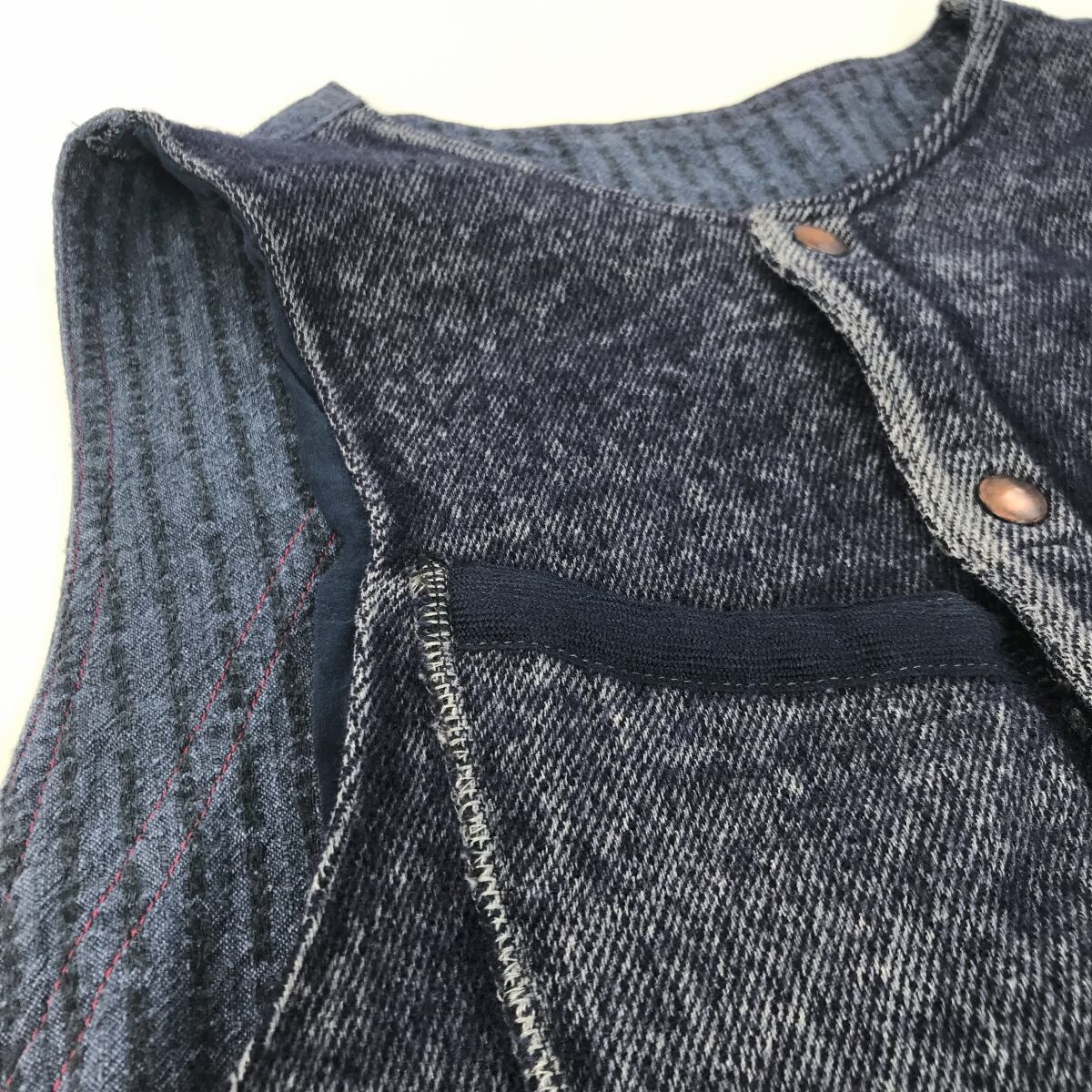 少し紫が強いインディゴカラー、ポケットのパイピングは
