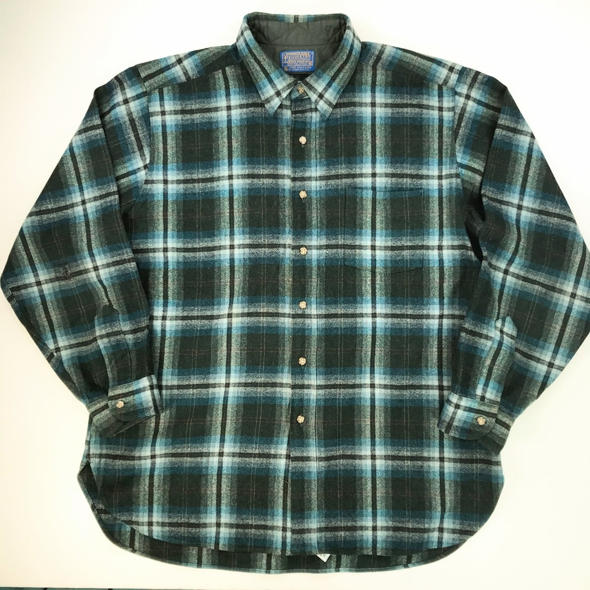 PENDLETON ペンドルトン 70年代 USA製 チェック柄 ウールシャツ 襟芯入り オンブレ調 ダークフォレストグリーン ブルー 系 XL 表記 XXL 位 長袖