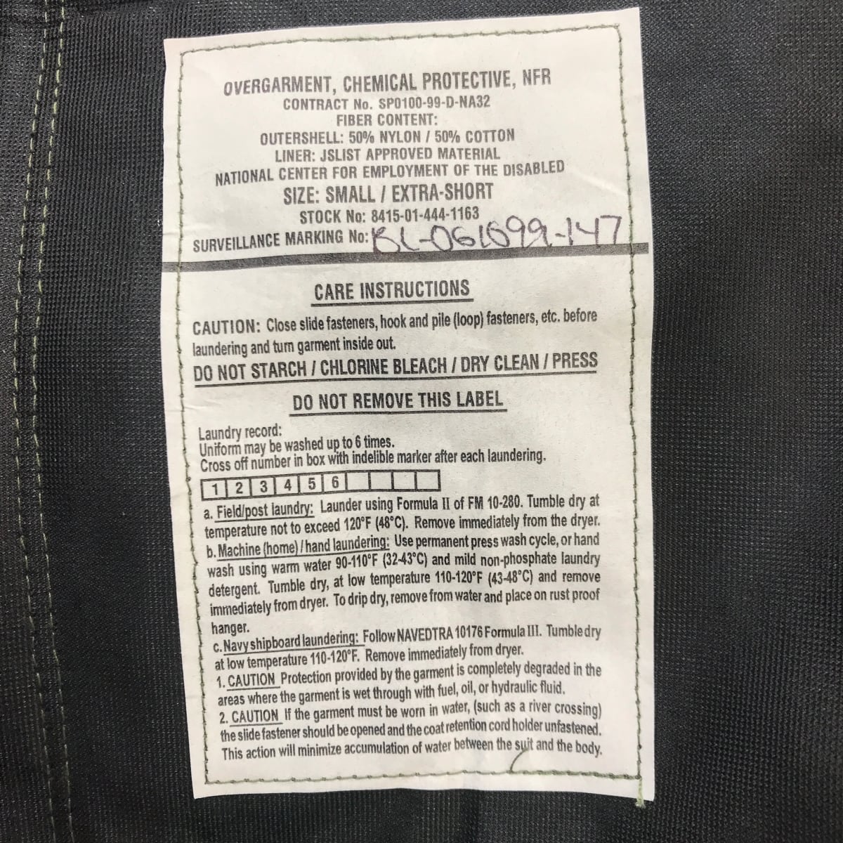 OVERGARMENT, CHEMICAL PROTECTIVE, NFR