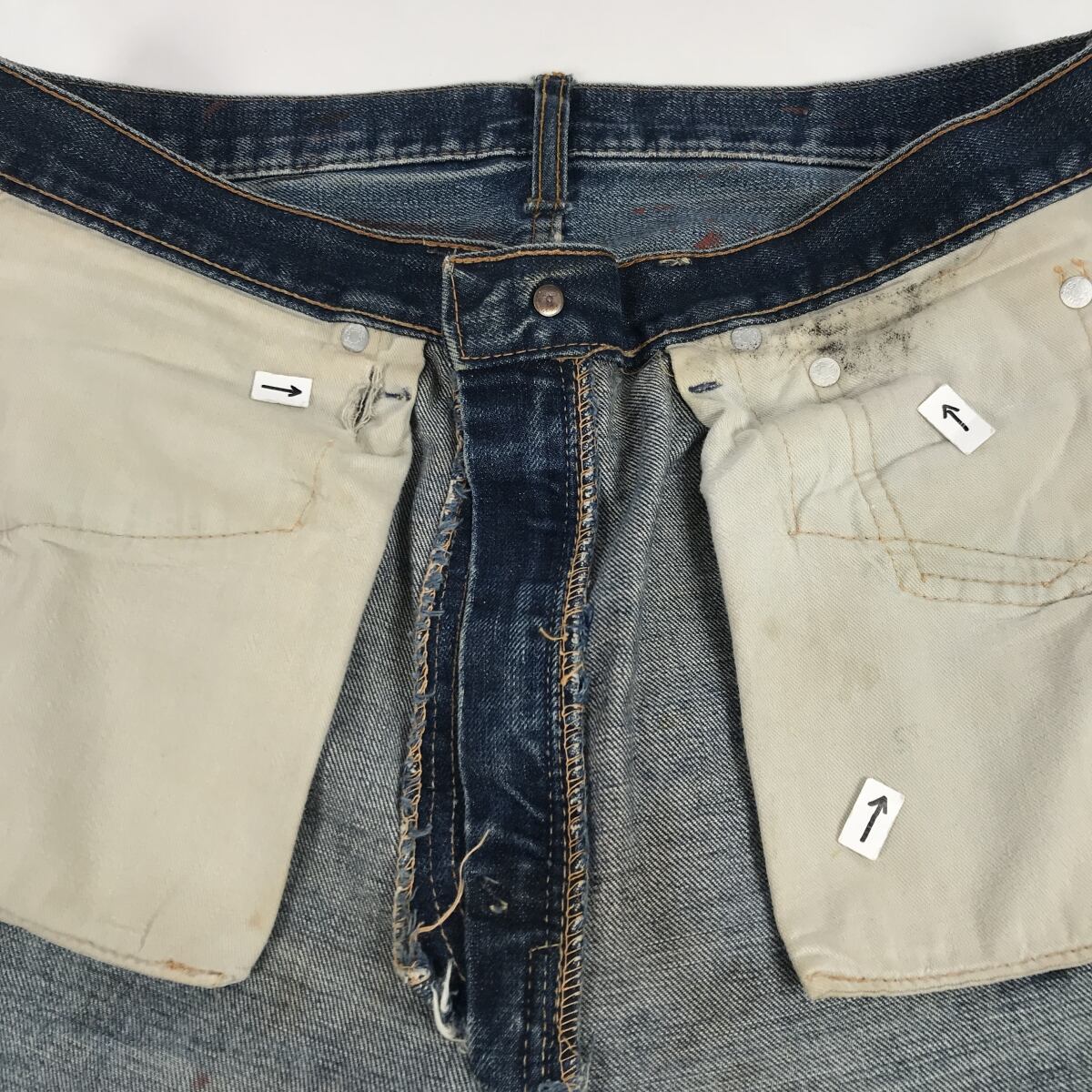 ・ヒップポケット、コインポケット裏、シングルステッチ