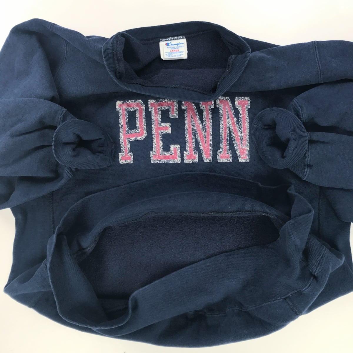 CHAMPION チャンピオン 80年代 USA製 トリコタグ 2枚タグ 完全目無し リバースウィーブ スウェット PENNSYLVANIA UNIVERSITY カレッジプリント 1段 LARGE 表記 長袖 | 古着屋 EAGLEBASE