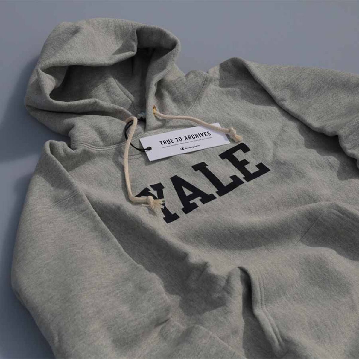 【新品】CHAMPION チャンピオン “TRUE TO ARCHIVES” リバースウィーブ フーデッド スウェットシャツ フーディ YALE イェール大学 シルバーグレー 長袖