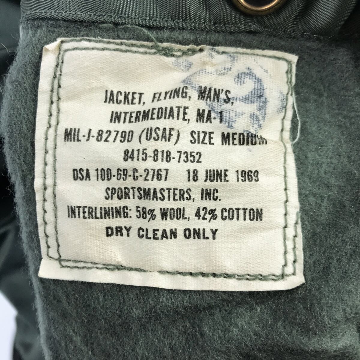 U.S.AIR FORCE 60年代 MA-1 フライトジャケット JACKET FLYING MAN'S INTERMEDIATE SPORTSMASTERS社 MIL-J-8279D オリーブグリーン MEDIUM 表記 長袖
