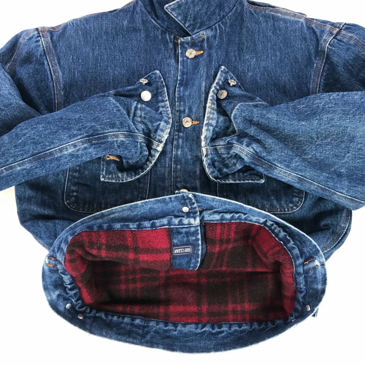 裏地にはチェックのブランケットライナーが貼られています