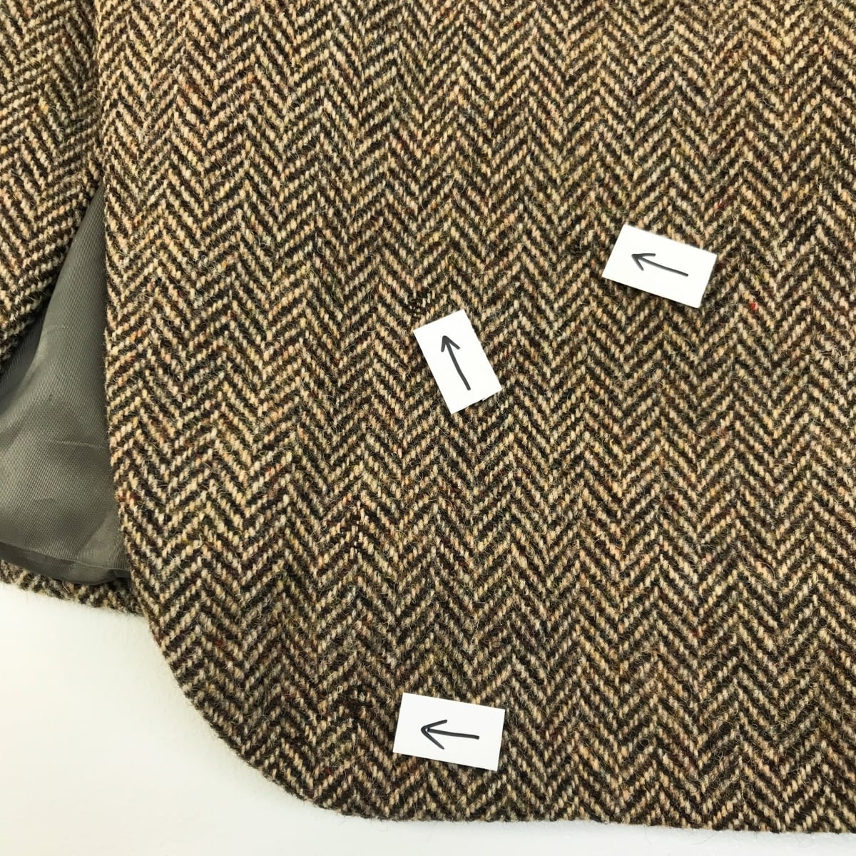 裏地両脇に生地の傷み(小さな擦れ裂け)が数点あります