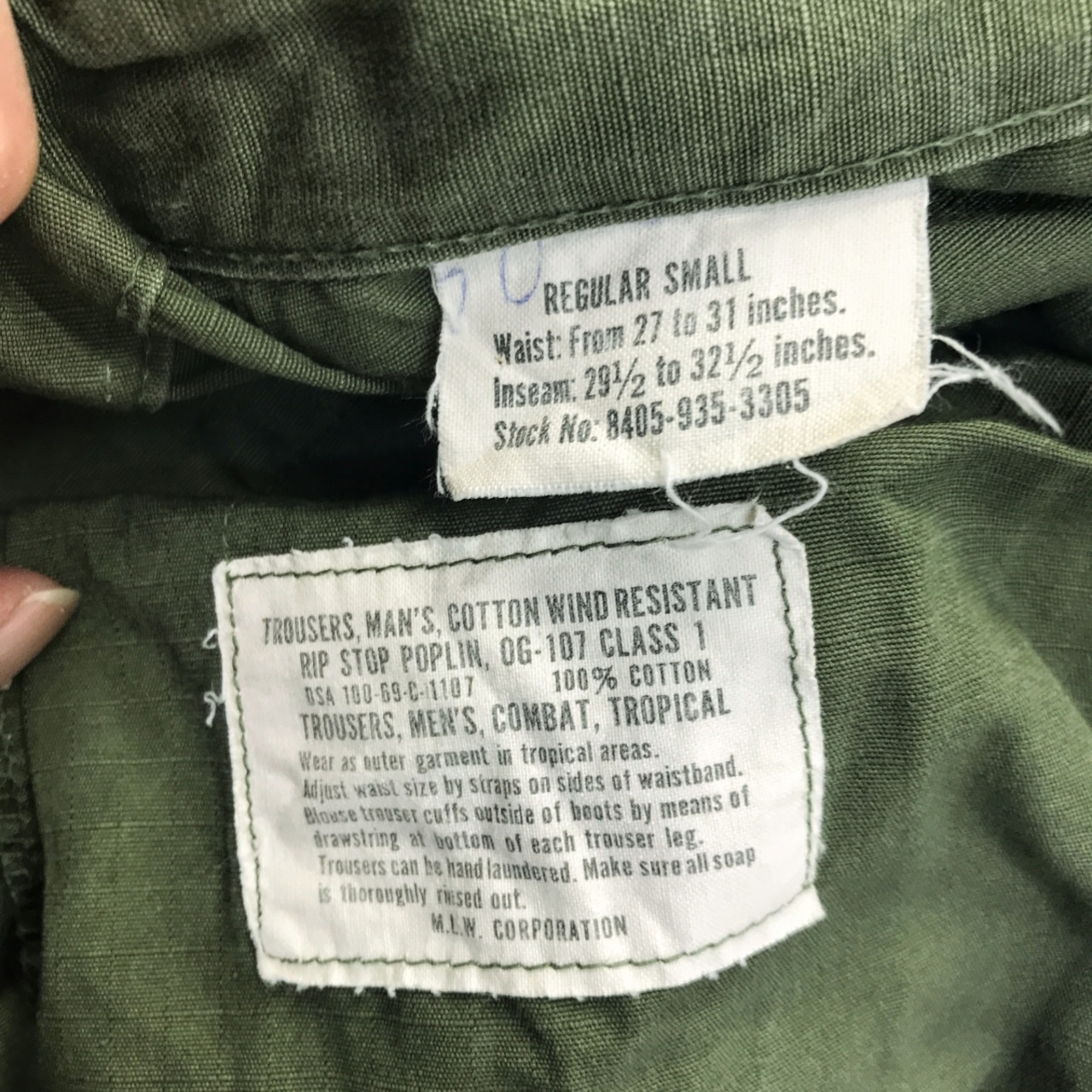 U.S.ARMY 60年代 4th タイプ リップストップ ジャングルファティーグパンツ OG-107 CLASS 1 オリーブグリーン REGULAR SMALL 表記 W30 L28 位