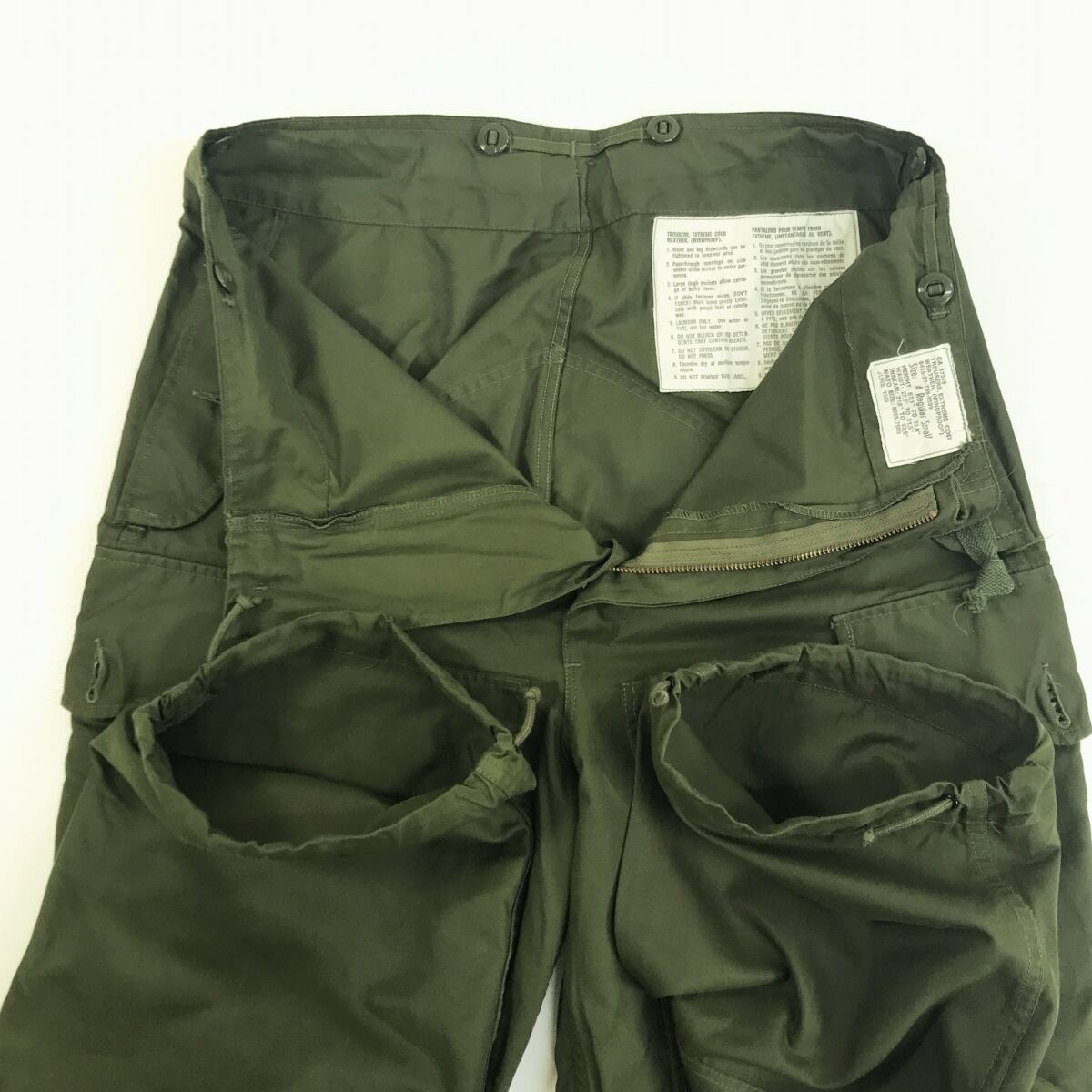 CANADIAN ARMY カナダ軍 80年代 オーバーパンツ ECW WIND PROOF OVER PANTS ポケット袋付き グリーン 4 REGULAR SMALL 表記 W34〜35 L29 相当