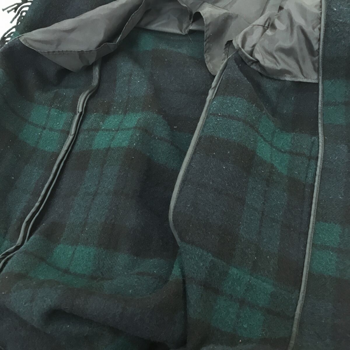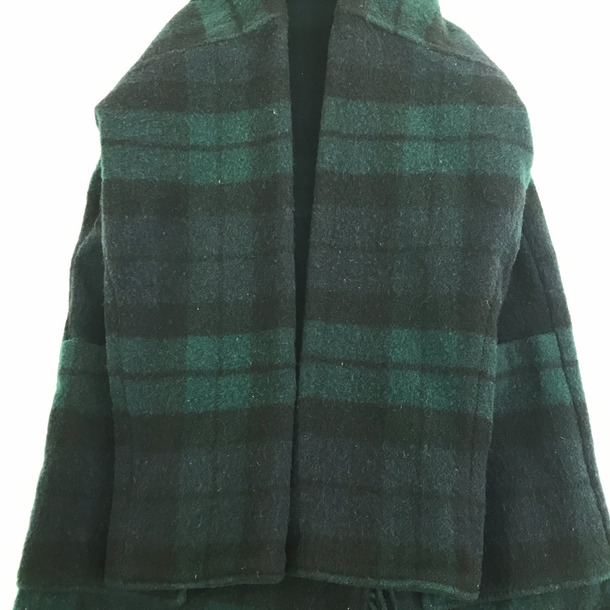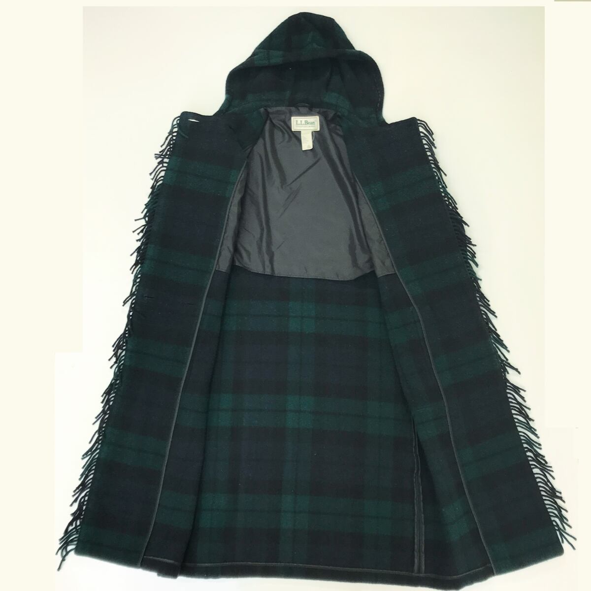 L.L.BEAN エルエルビーン 90年代 USA製 レディース ブラックウォッチ チェック ウール ロングコート フリンジ付き S 表記