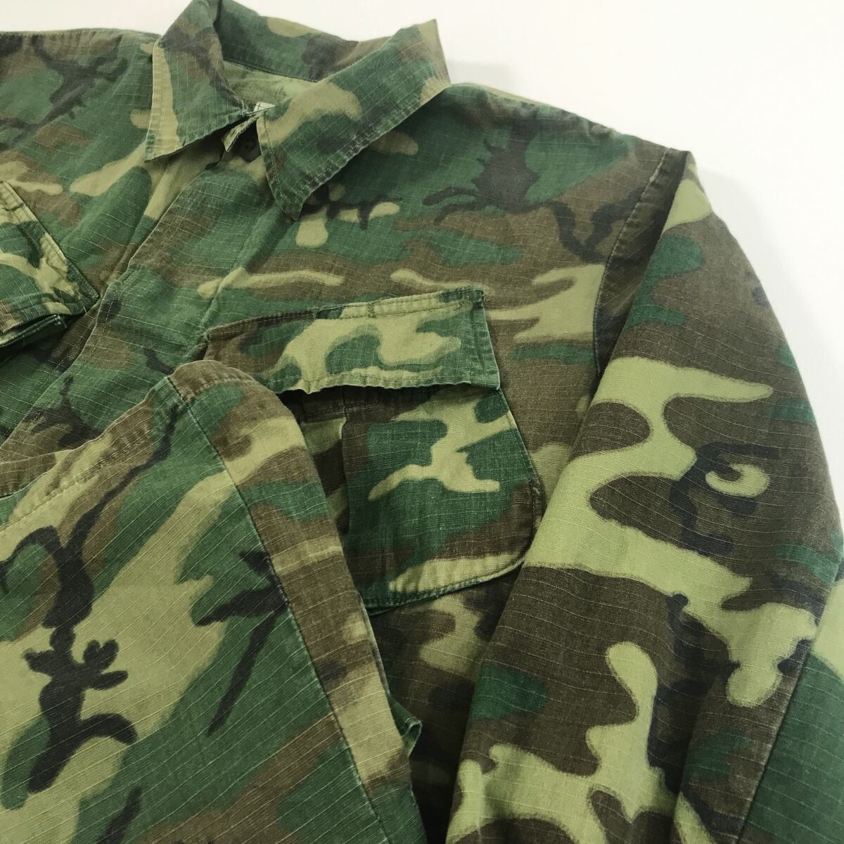 U.S.ARMY 70年代 JUNGLE FATIGUE JACKET ジャングルファティーグジャケット リップストップ ERDL カモ ミックスリーフカモ 5th ガゼットなし MEDIUM SHORT 表記 ML位 長袖