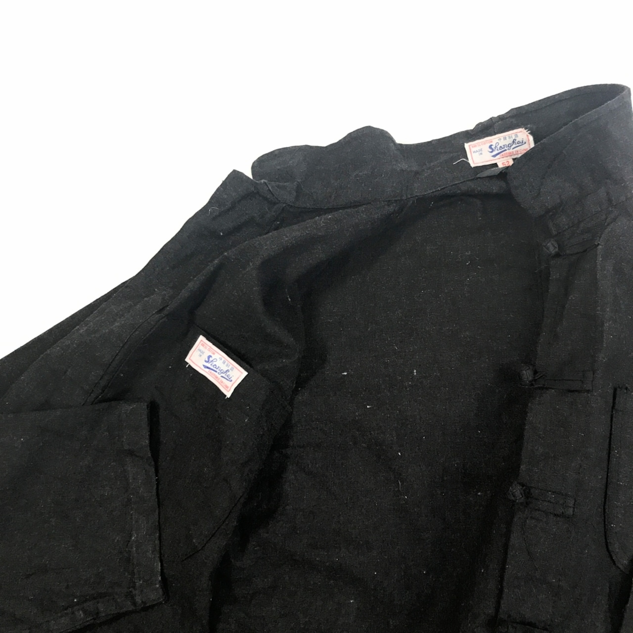 FRANCH CHINA フレンチ チャイナ ワーク セットアップ チャイナスーツ ブラック トップス M 位 パンツ W30 L26 位 長袖