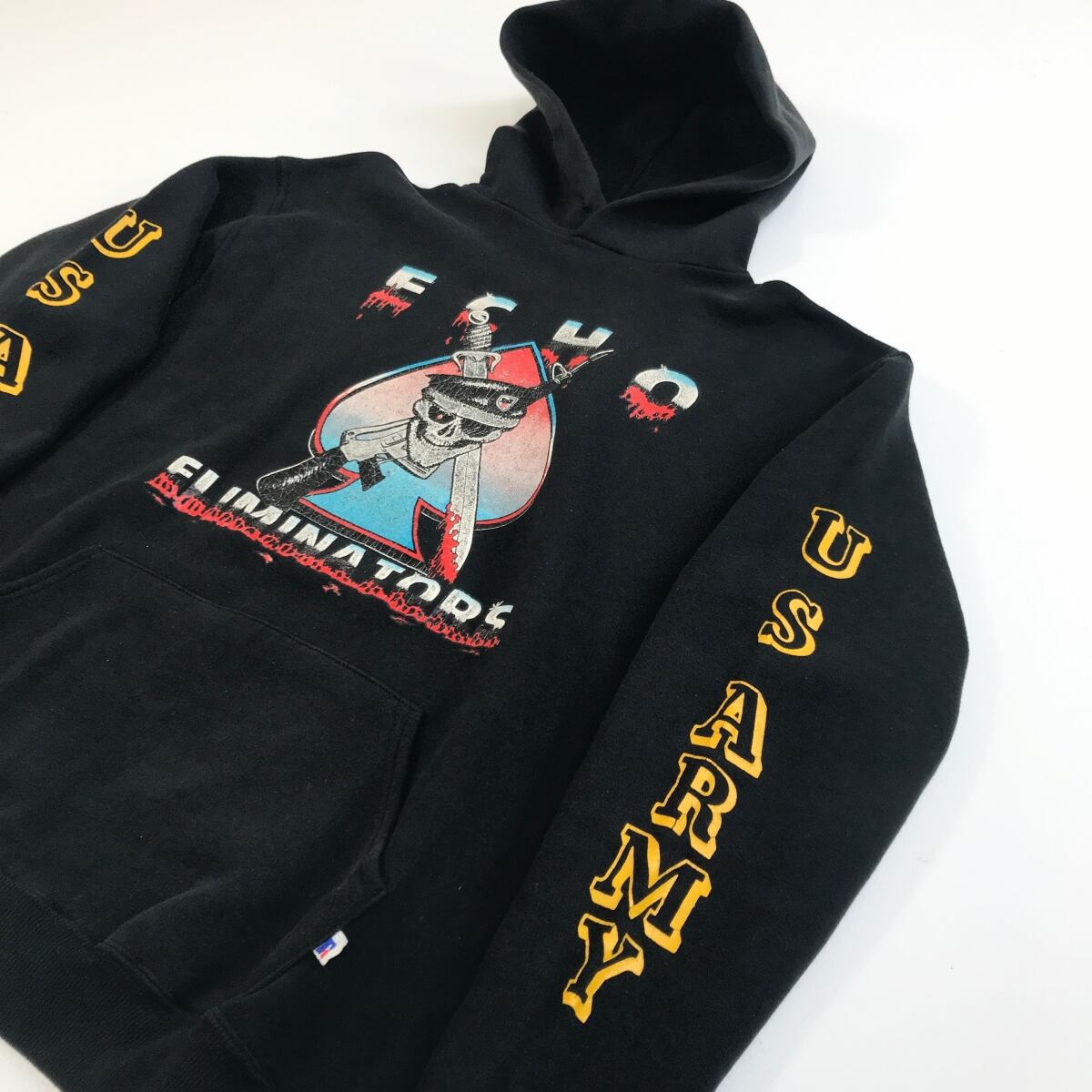 RUSSELL ATHLETIC ラッセルアスレチック 90年代 USA製 U.S.ARMY ECHO ELIMINATORS COBRAS 両面プリント 両袖プリント スウェット パーカー L 表記 ブラック 長袖