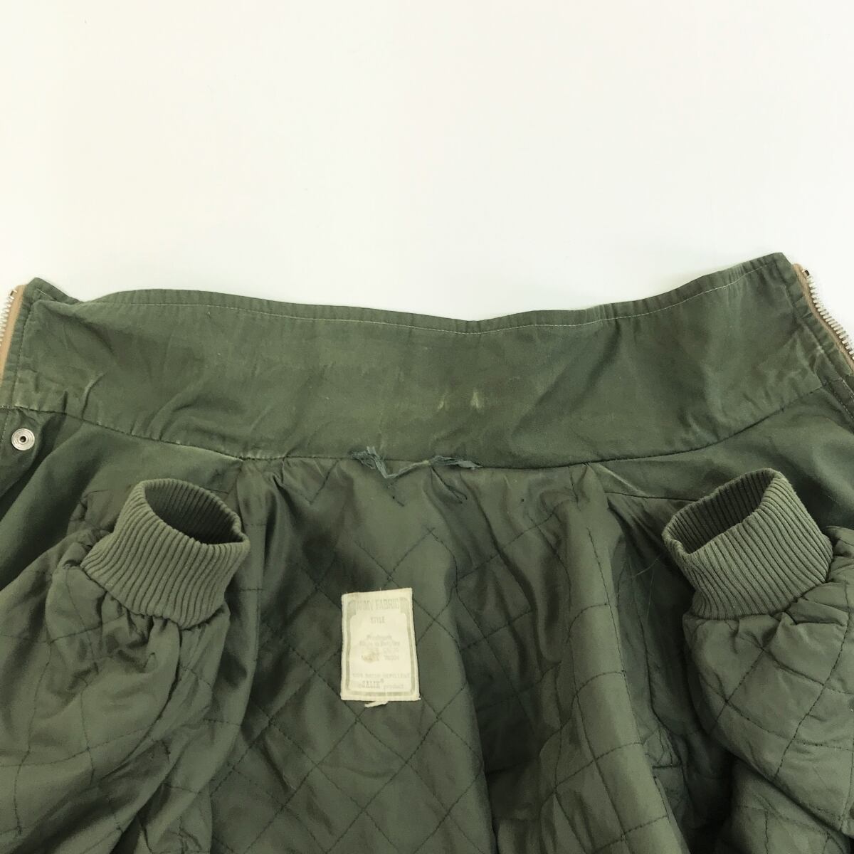 袖肘にキルトの糸切れが多数あります