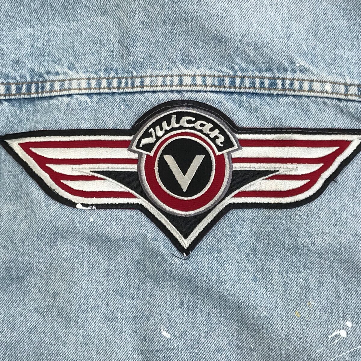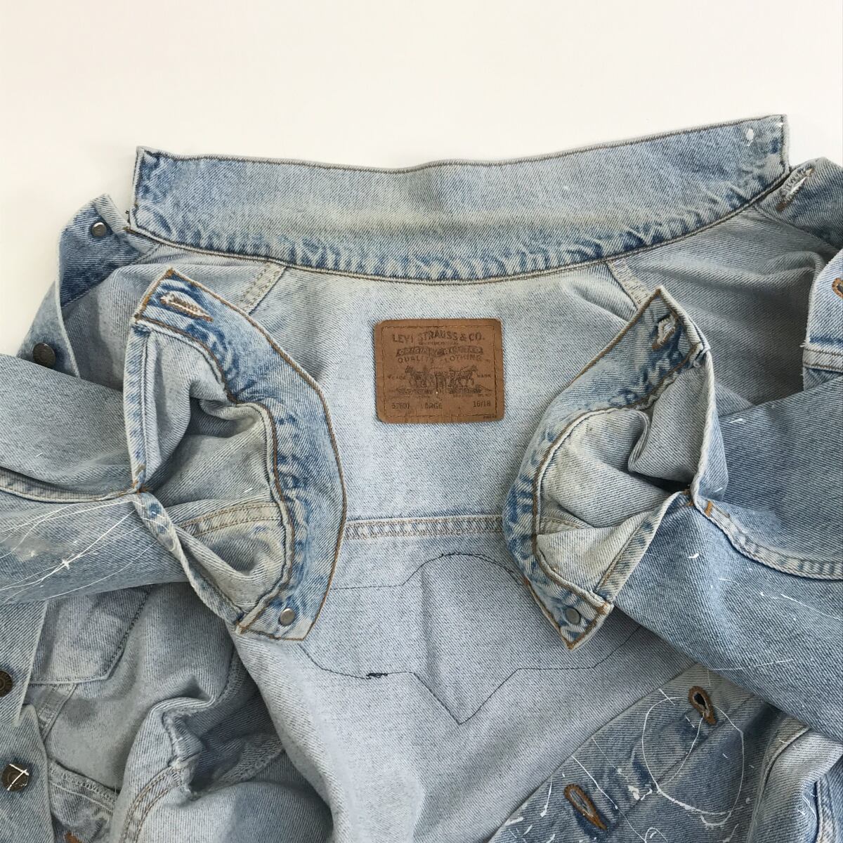 LEVI'S リーバイス 90年代 USA製 57507- 0790 オレンジタブ MOMTORCYCLE 両面 パッチ付き スプラッシュ ペイント 4ポケット デニムジャケット ブルー LARGE 表記 XL 位 長袖 | 古着屋 EAGLEBASE