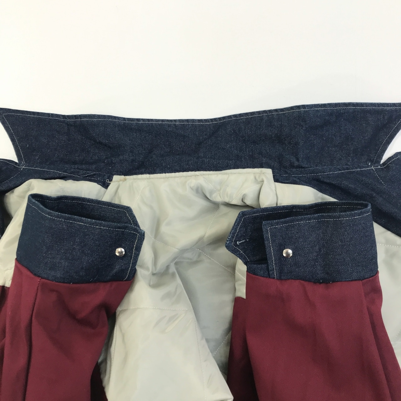 裏地の袖のワイン色の