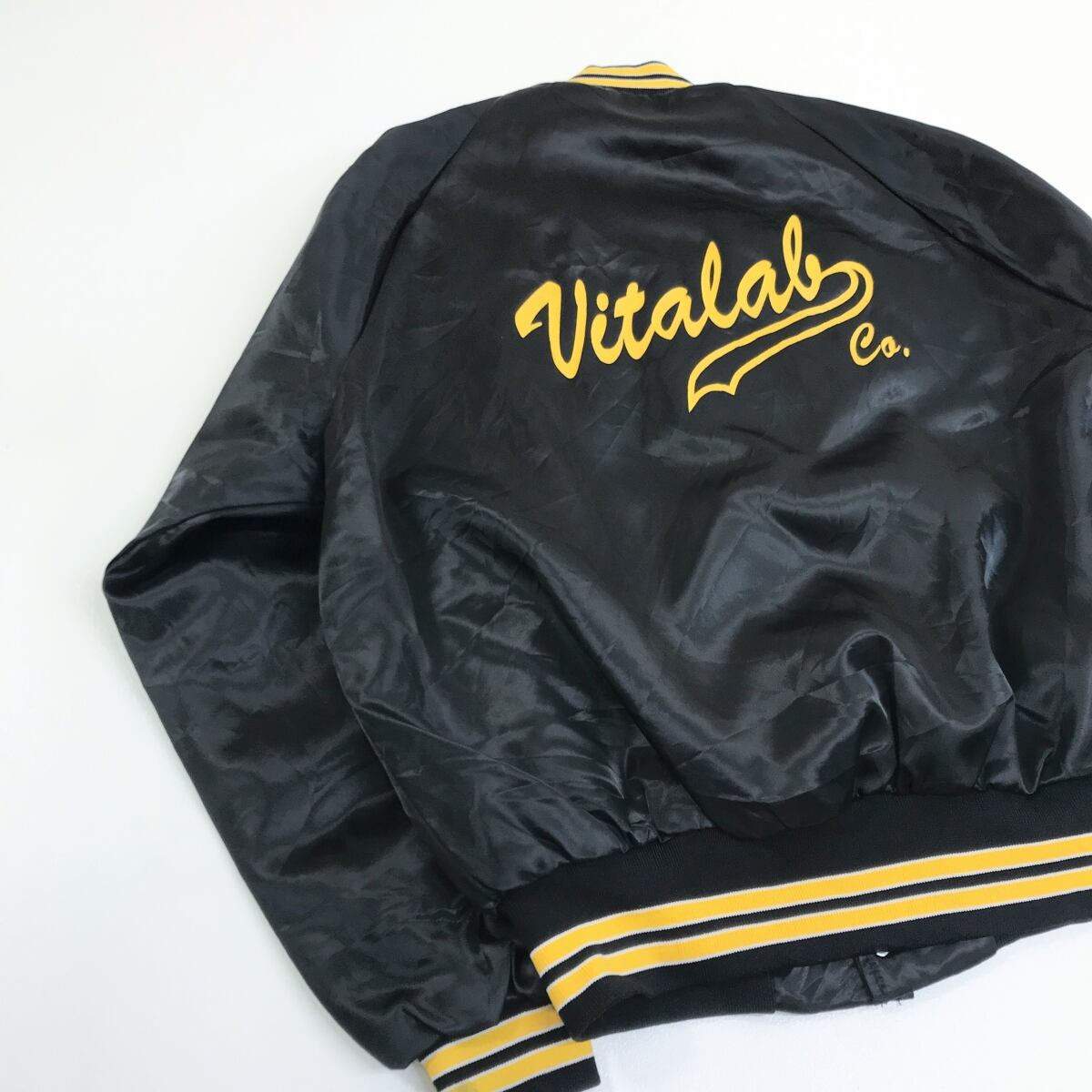 PLA-JAC BY DUNBROOKE プラジャック 70〜 80年代 USA製 VITALAB 企業ロゴプリント ナイロンスタジャン ブラック L 表記 XL 位 長袖
