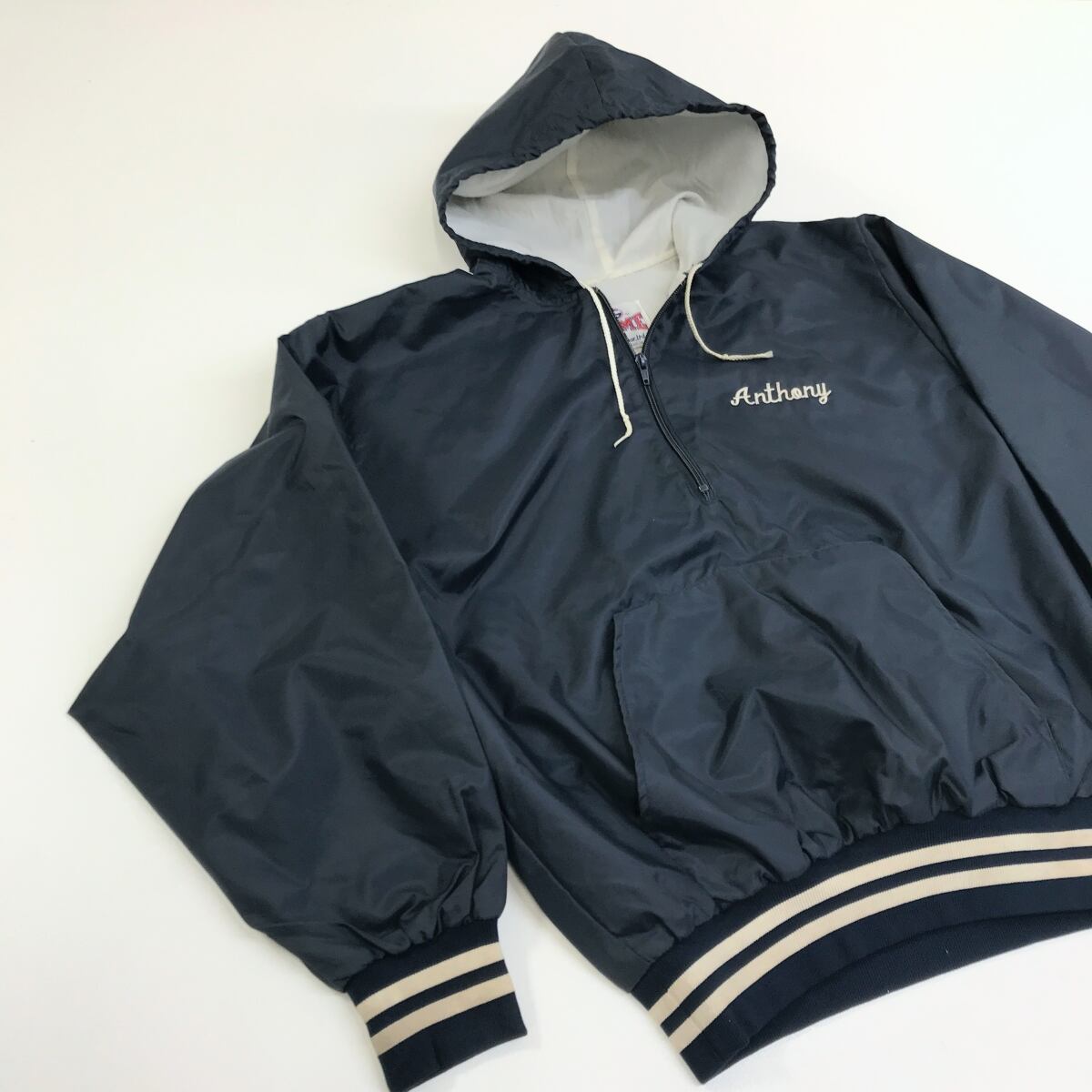 GAME SPORTSWEAR 80年代 USA製 プルオーバー ナイロンパーカー SMITHTOWN バックプリント ネイビー M 表記 L 位 長袖