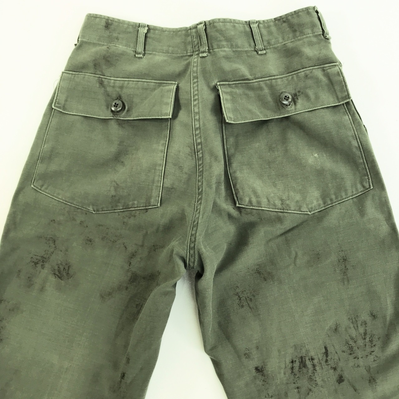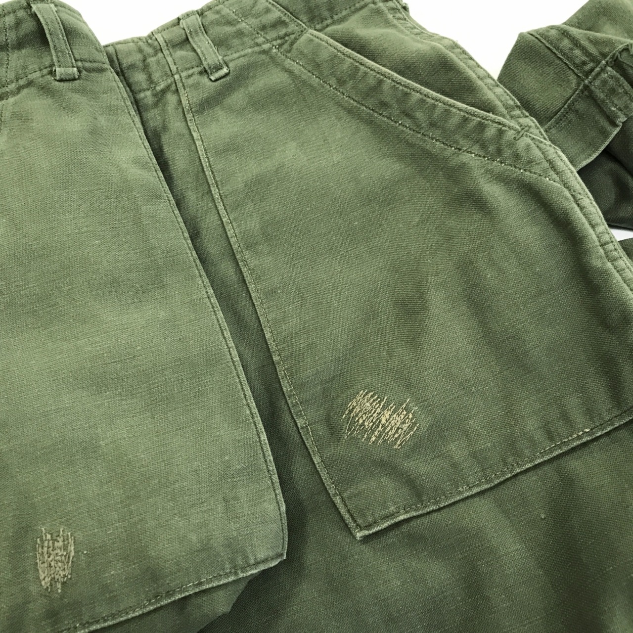 U.S.ARMY 70年代 USA製 OG-107 ミリタリー ベイカーパンツ ダブルステッチ TROUSERS, MEN'S COTTON グリーン W32 L31 表記 実寸 W30 L29 位