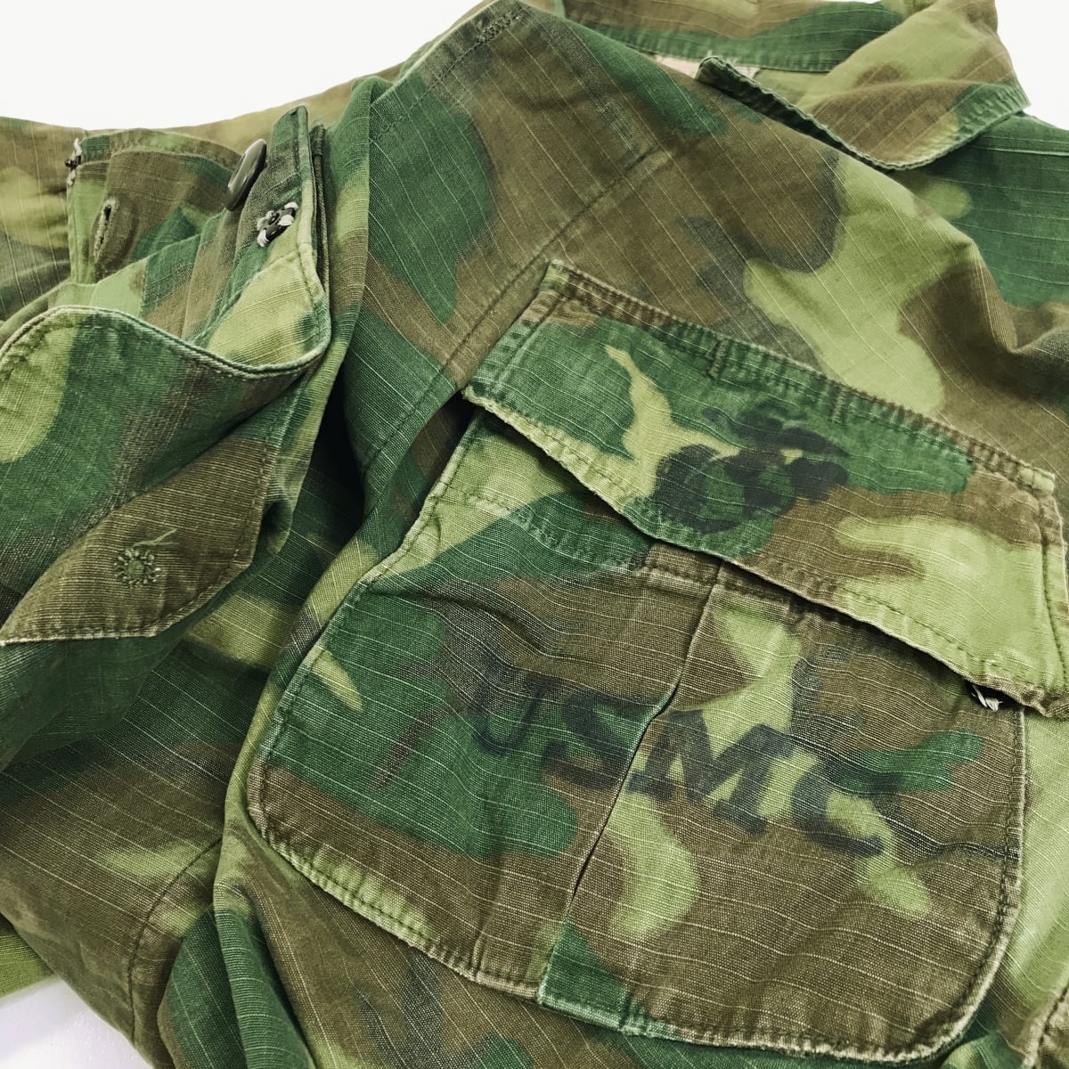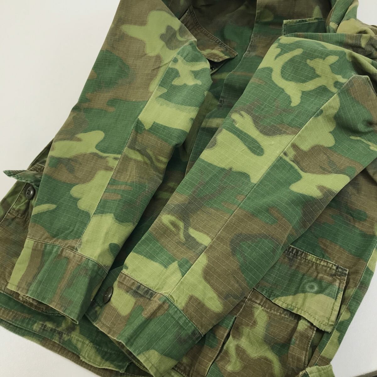 U.S.ARMY 60年代 JUNGLE FATIGUE JACKET ジャングルファティーグジャケット リップストップ ERDLカモ グリーンリーフカモ 5th ガゼットなし SMALL REGULAR 表記 L位 長袖 | 古着屋 EAGLEBASE
